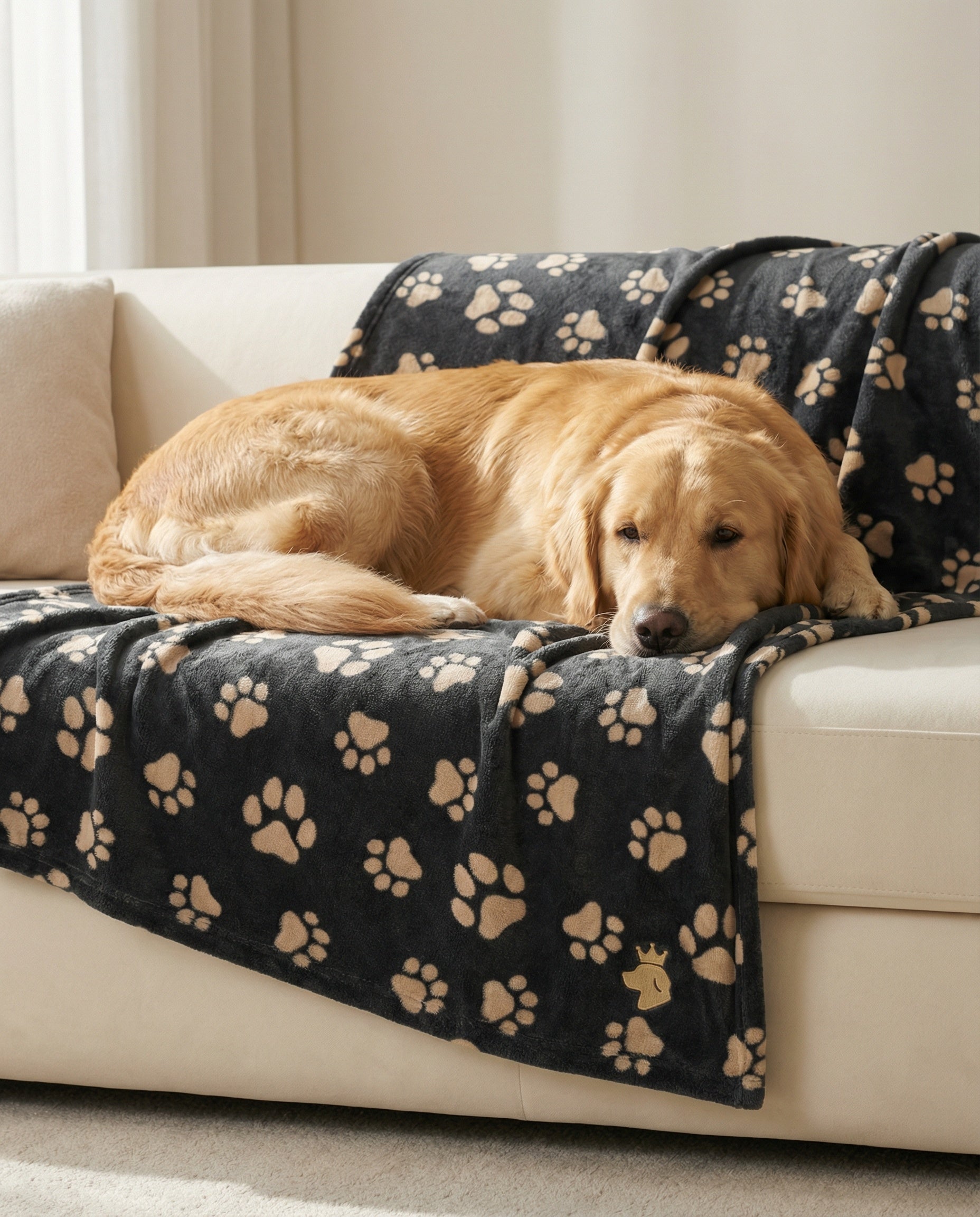 Give your dog the perfect mix of softness, warmth, and comfort with the DogKingdom™ Ultra-Soft Paw Print Pet Blanket. Designed for couches, beds, crates, and everyday snuggles, this velvety blanket keeps your pet cozy while protecting your furniture in style.