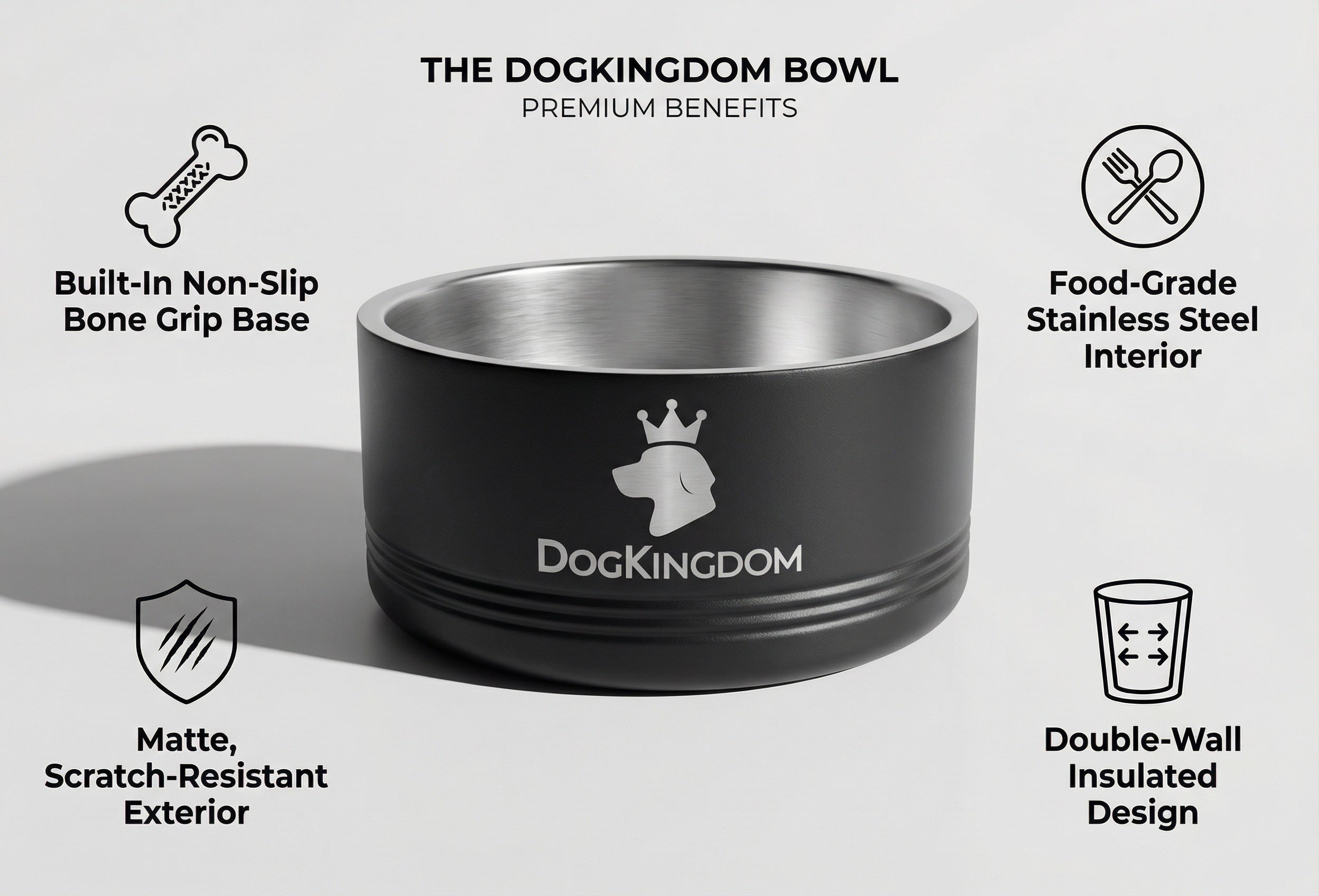 The premium insulated stainless-steel dog bowl engineered for cleaner feeding, cooler water, and unmatched stability — built for dogs of all sizes, from small companions to powerful large breeds.